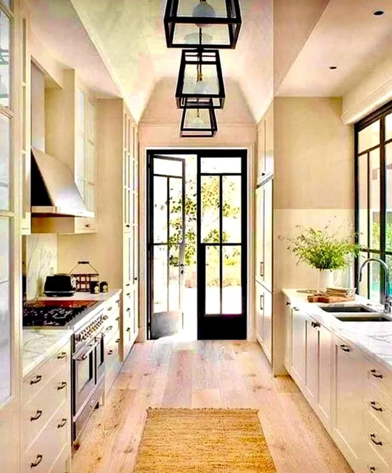 • Custom-designed galley kitchen with tailored cabinetry and refined finishes